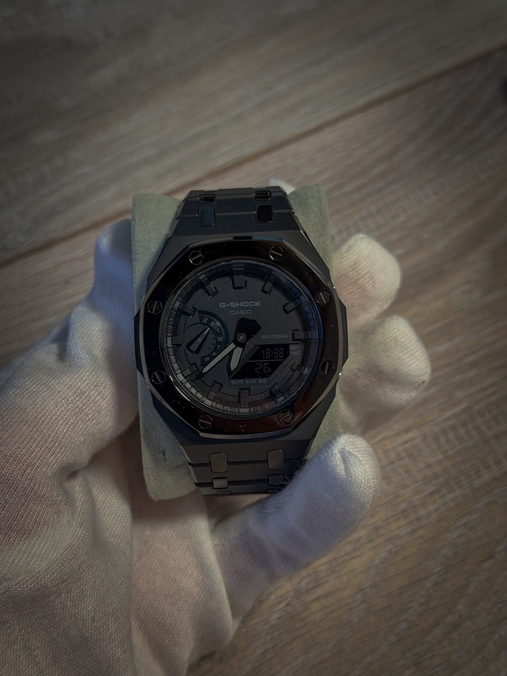 Montre G-Shock modifiée à la main, look total black moderne et unique. Parfaite pour le quotidien, le sport ou pour affirmer un style discret mais puissant.
